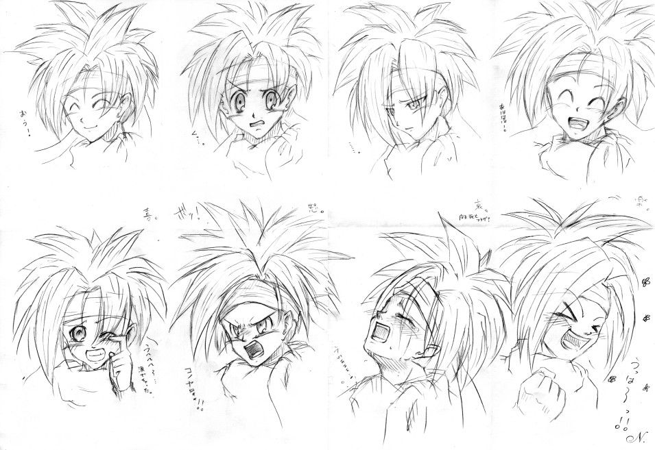 ソフトな喜怒哀楽と、激しい喜怒哀楽の表情を描いていました。