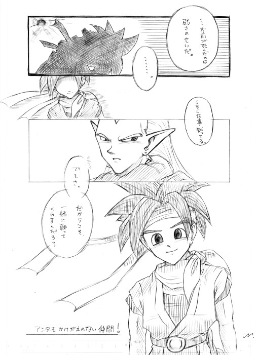 ぼろぼろになりながらも、ラヴォスに立ち向かう主人公くんの姿を見る魔王に…。