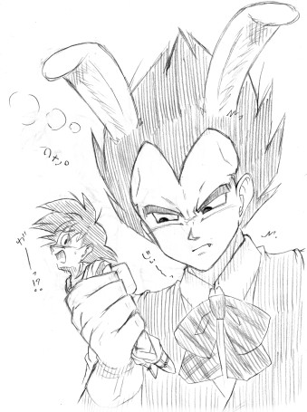 うさみみ…生やすかカチューシャか悩みましたが、ベジータにカチューチャを描く自信が無かったので生やしました。(ぉぃ)