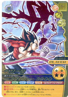 第4弾の非売品3枚のカードは、悟空さとゴジータ(SS)とベジータ(SS4)なのですが、もう何が出てきてもいいや!凄いレアなんだから!と、ぺりぺりとパックを開けてみます…。